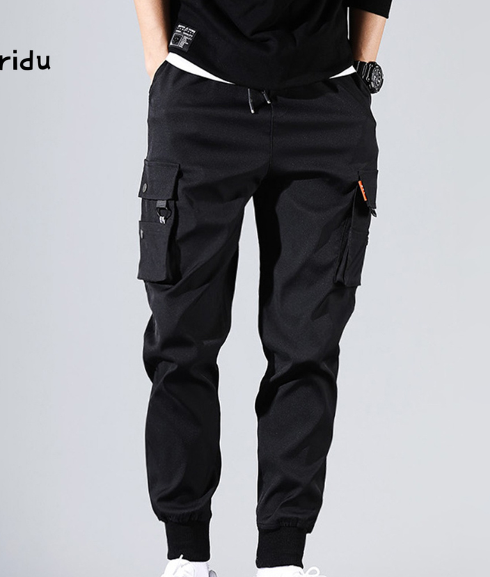 Men's Harem Streetwear Jogger Ribbons Trousers Hip Hop Cargo Pants