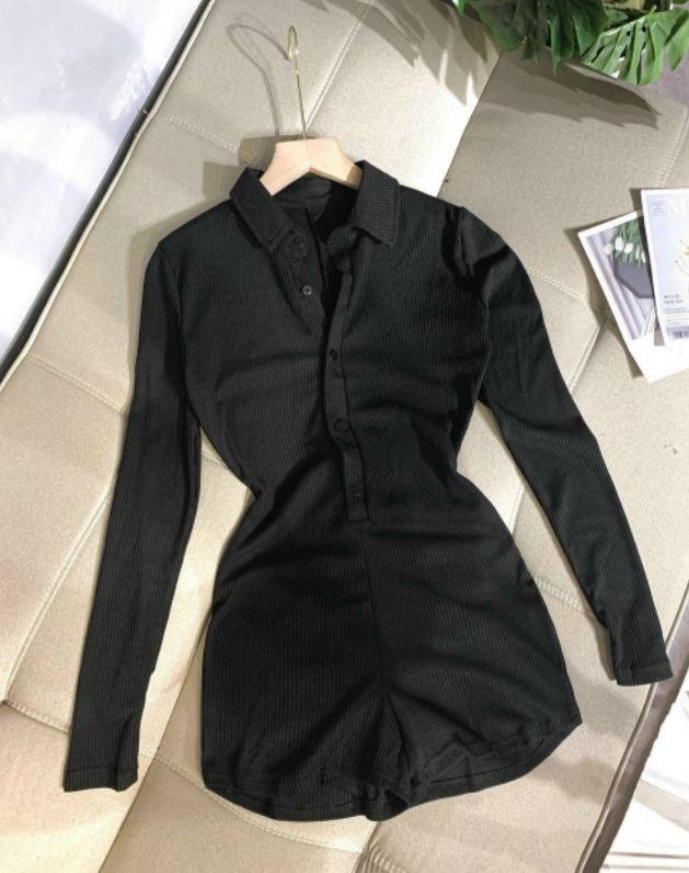 High-quality Short Jumsuit Ribbed Elastic Neck Design Personality Long-Sleeved somi Neck, Youthful Wearing To The Beach, Taking hot trend