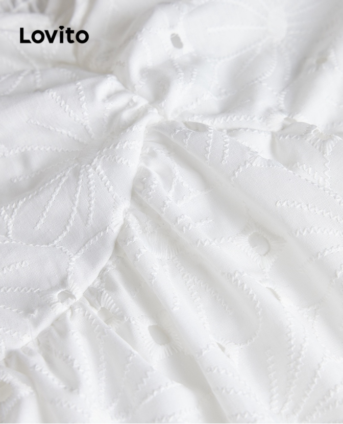 Lovito Casual Plain Ruffle Hem Short Sleeves A-Line Mini Dress for Women L49ED093 (White)