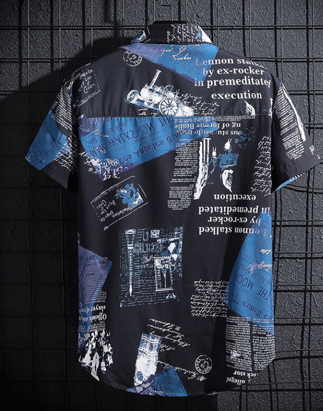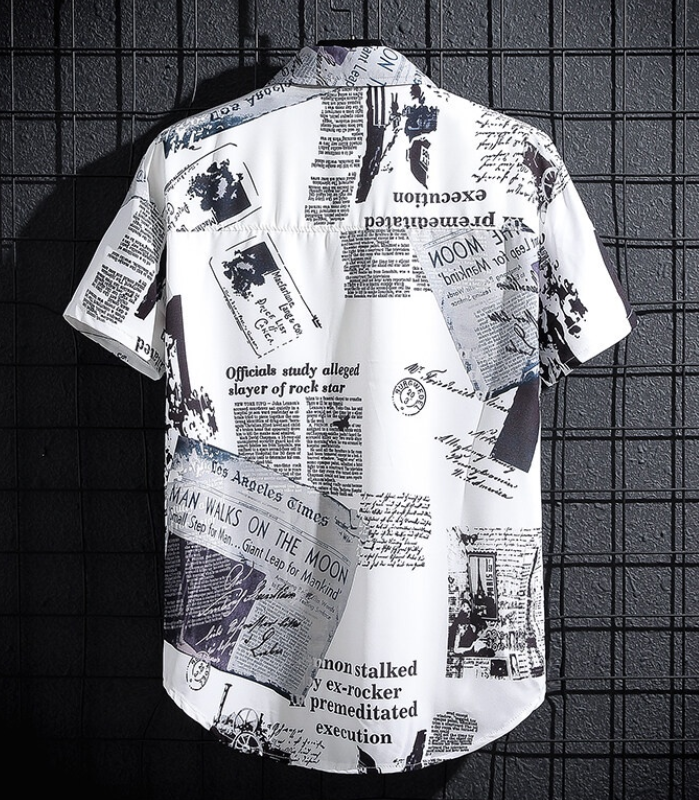 Summer Men's Short-Sleeved Newspaper Shirts, Thin Graffiti Trendy Clothes, Printed Loose INS Trendy Tops. Half-Sleeved Shirt.