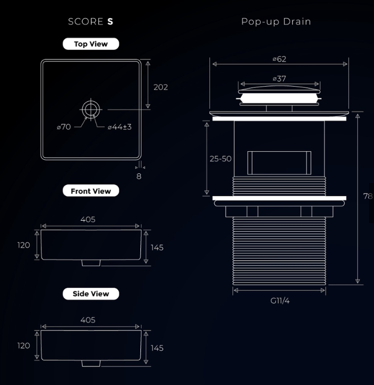ZUHNE Square Bathroom Vessel Wash Basin Countertop Sink, 40 by 40 cm, Score Series